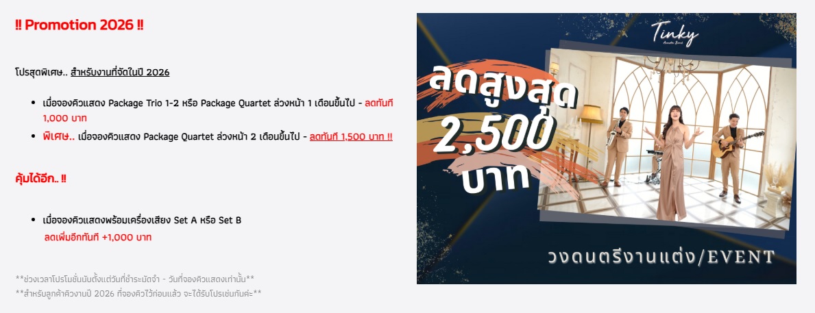 Event & Party Package สอบถามเพิ่มเติม : Facebook TinkyBand / Line @TinkyBand